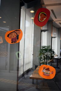 会場のあちこちに、長谷川さんのイラストがたくさん!