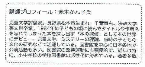 ①10/30(日) 文化の森第2集会室 講師/赤木かん子さん