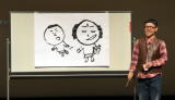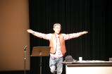 あいにくの雨の中、たくさんの人が集まった会場は、息つく間もなく、笑いの渦に包まれました。