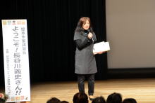 いきなりの笑顔の長谷川さんに、会場もホンワカムードに包まれて