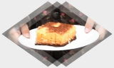 | アツアツの焼きたてのカステラに 大きな大きな切り目が入ります  |