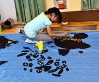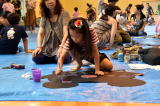 考え中・・・じっくり眺めてしっかり手を動かし、自分の色を決めていきます