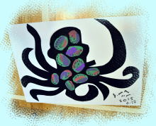 そろそろラストスパート。色とりどりの模様が、黒い紙の上に浮かんでいる様…