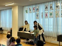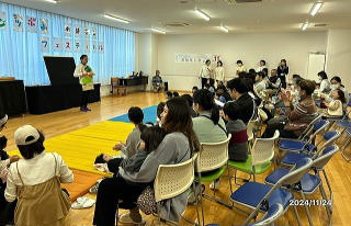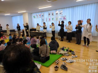 盛りだくさんのプログラム、マットの上で自由に動きながらこもたちも楽しんでくれたと思います