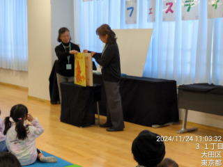 会場で配られたお手玉をつかってみんな一緒に遊びましょう!