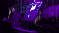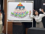 色とりどりのパーツをつなぎ合わせて貼っていく