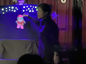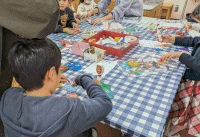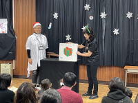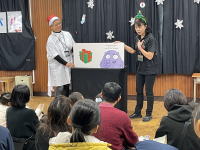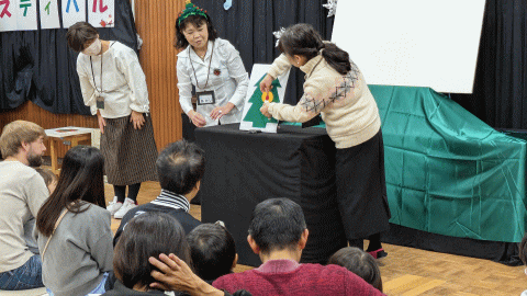 読み聞かせとは異なるパネルの世界。クリスマスツリーの飾りつけは・・・⁉