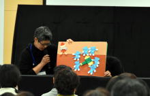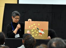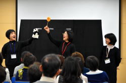 参加型素話は、お待ちかね皆さんにも舞台に上がって頂いて、お話が展開していきます