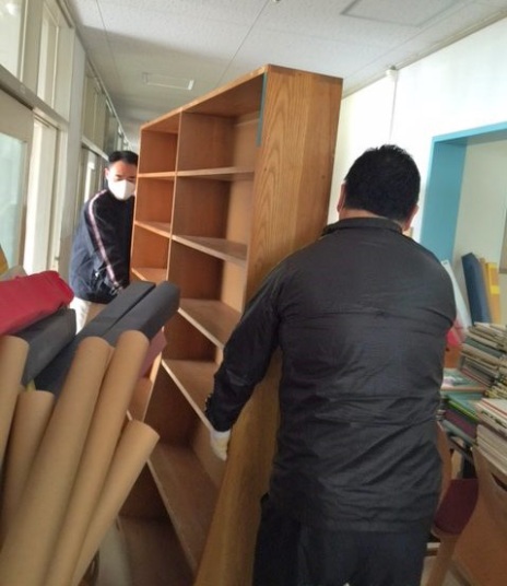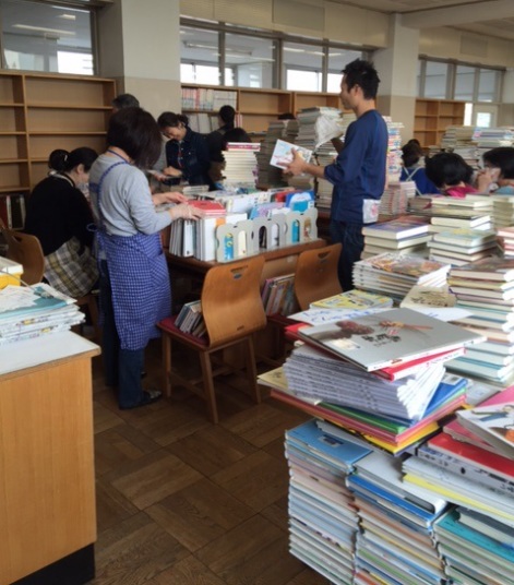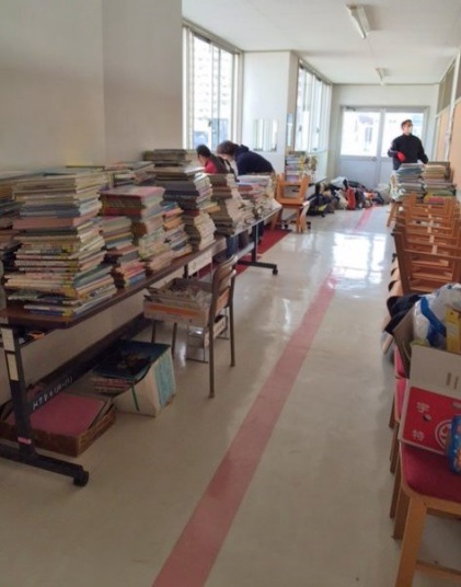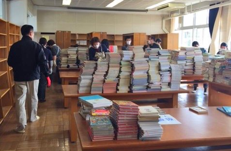 整備作業は多くのボランティアの皆さんの参加により、書籍の搬出や書棚の清掃など、手際よく進んでいきました |