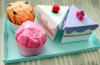 工作は、牛乳パックと紙コップでつくる「ケーキとマフィン」です。(画像あり)